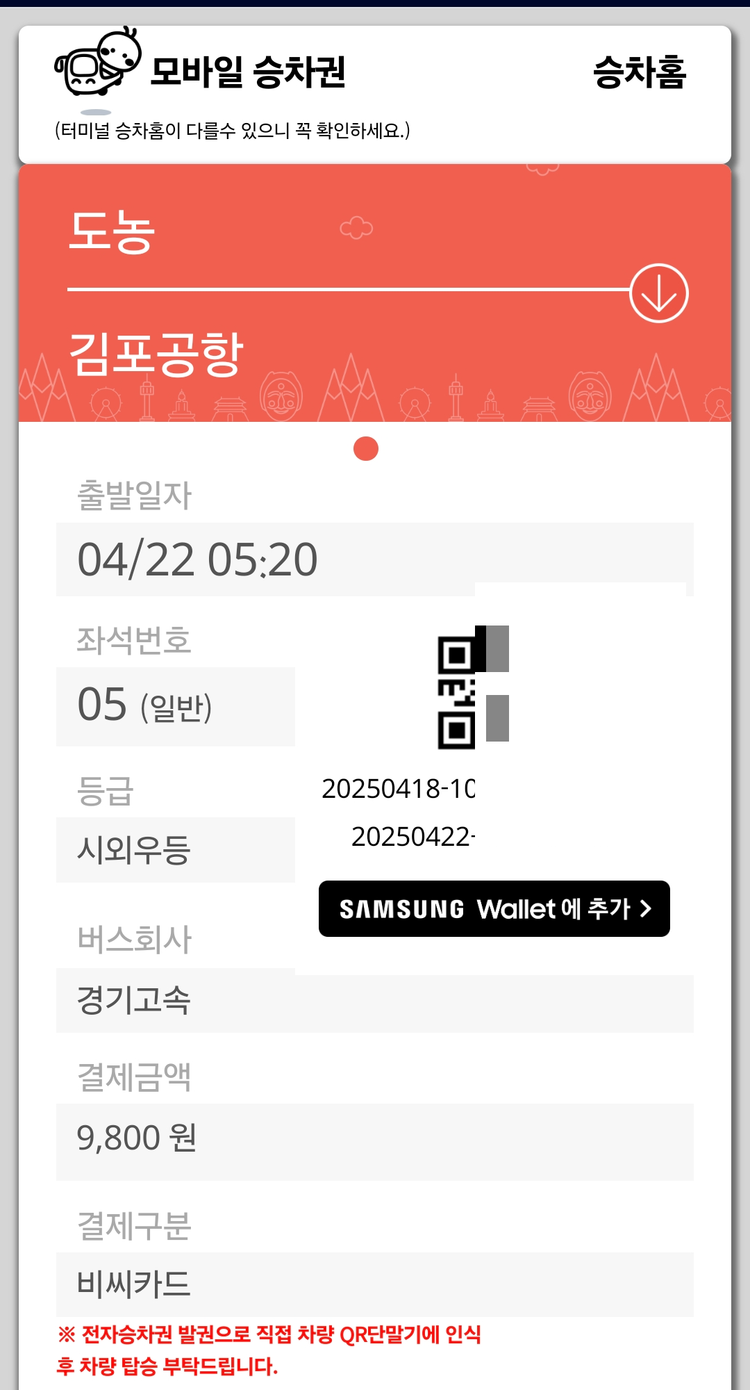 요즘 공항버스는 예매를 꼭 해야된다고 해서, 도농역 출발 공항버스 예매하였습니다.
