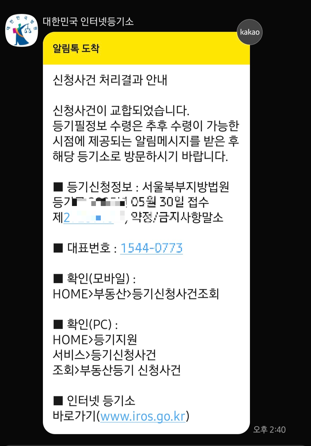 문제가 없어 등기하기로 결정되었다는 말입니다.